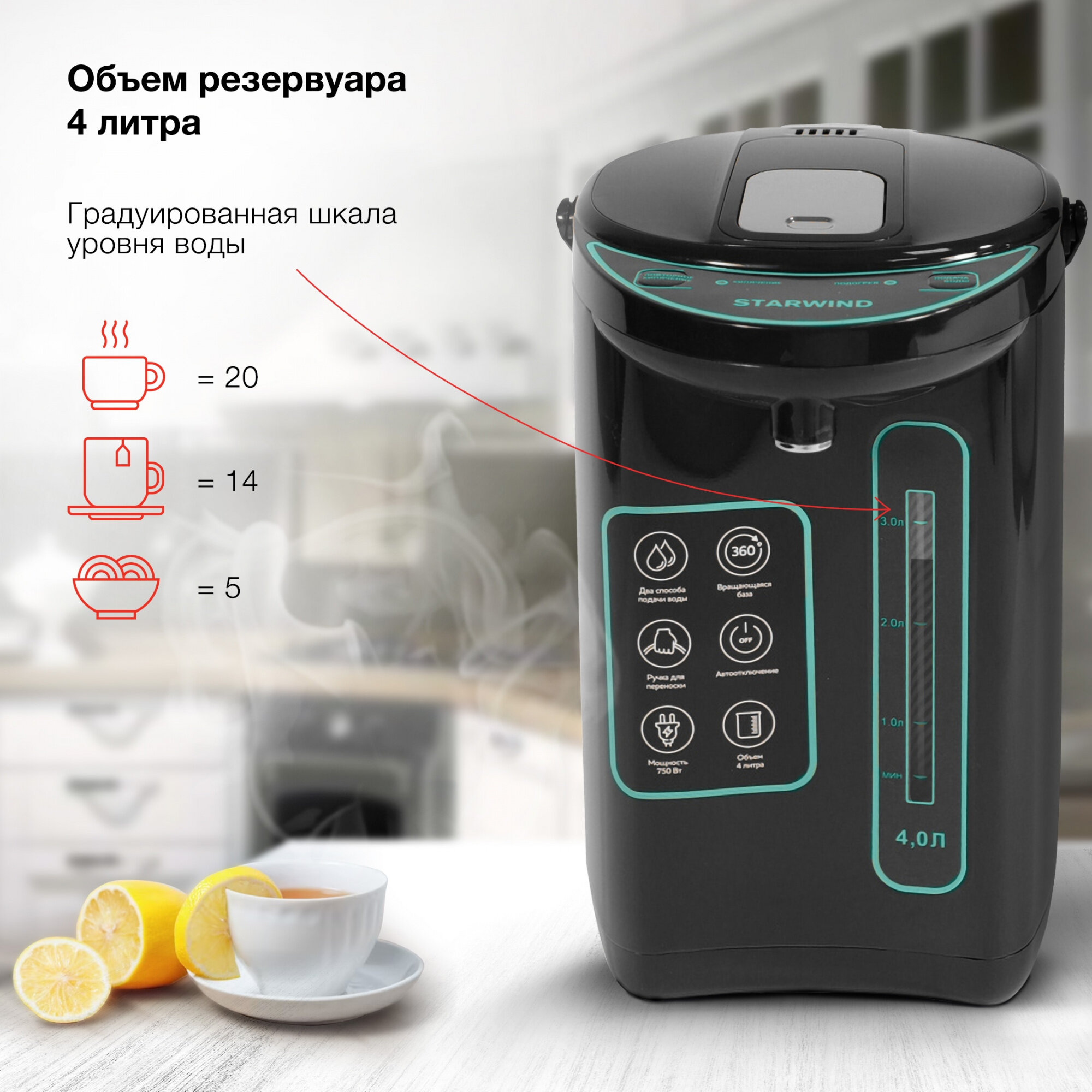 Термопот STP4181 4 Л 750 ВТ (1/6) "STARWIND" интересное:
