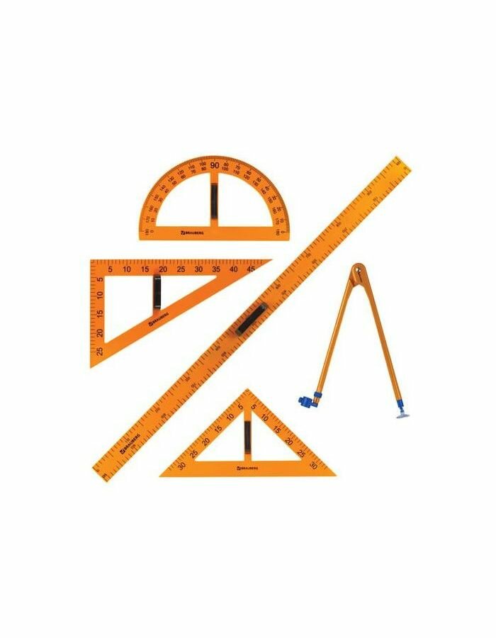 Купить Brauberg Набор чертежный для классной доски BRAUBERG: 2 треугольника, транспортир, циркуль, линейка 100 см