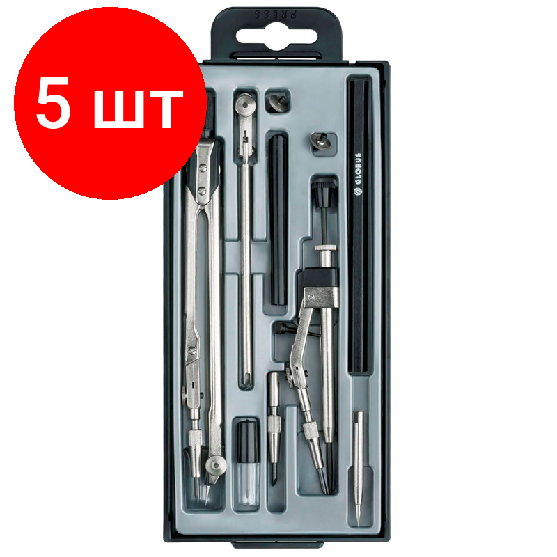 Купить Комплект 5 шт, Готовальня Globus "Technica", 10 предметов, циркуль 125мм, пластиковый футляр