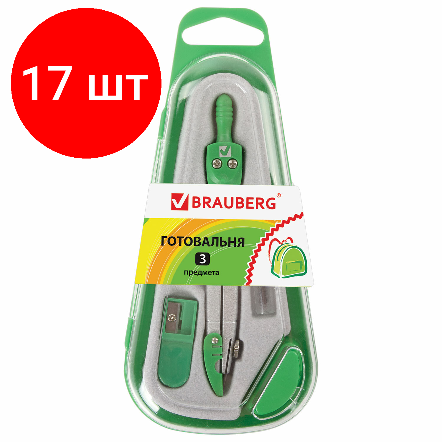 Купить Комплект 17 шт, Готовальня BRAUBERG "Klasse", 3 предмета: циркуль 115 мм с колпачком, грифель, точилка, пенал с подвесом, 210330