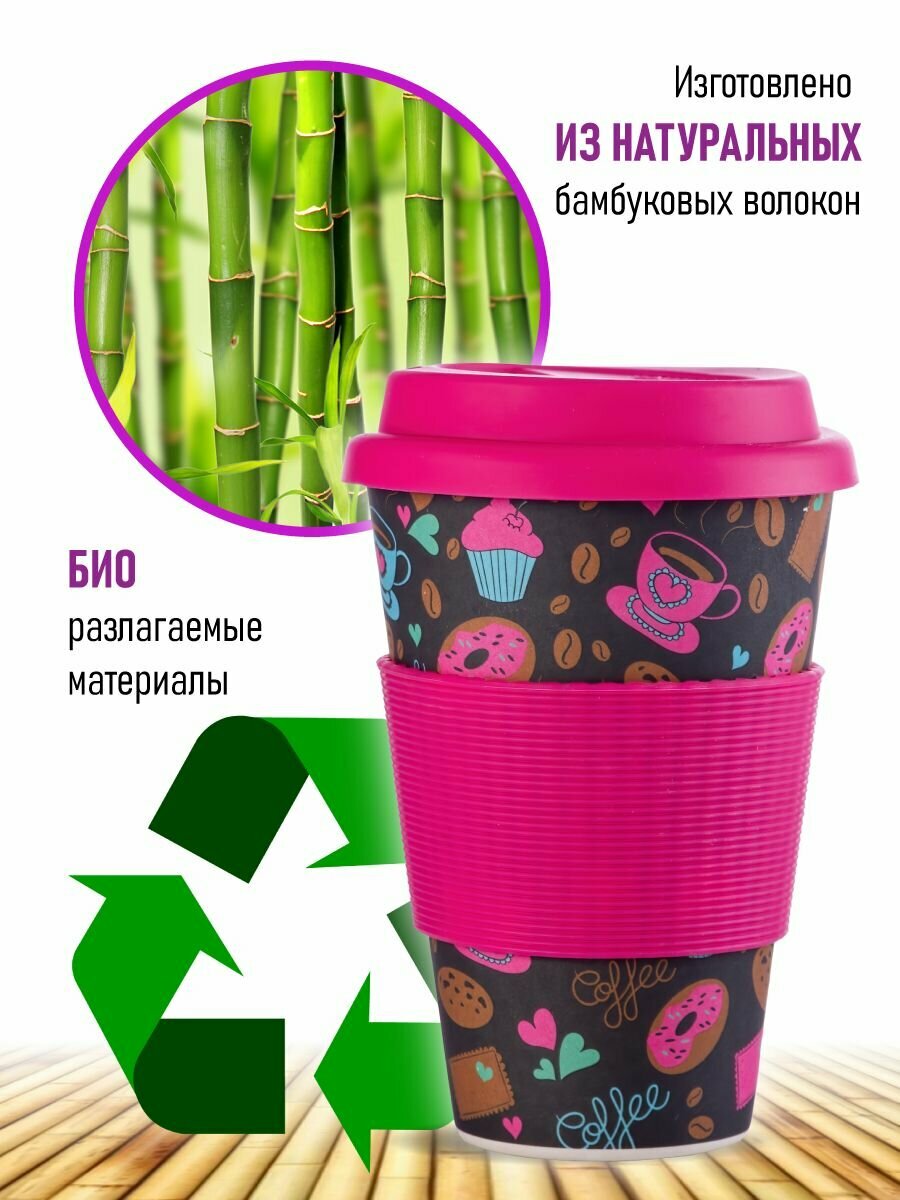 ЭКО Стакан из бамбукового волокна BambooCup "Пончики-Донатс", 400 мл