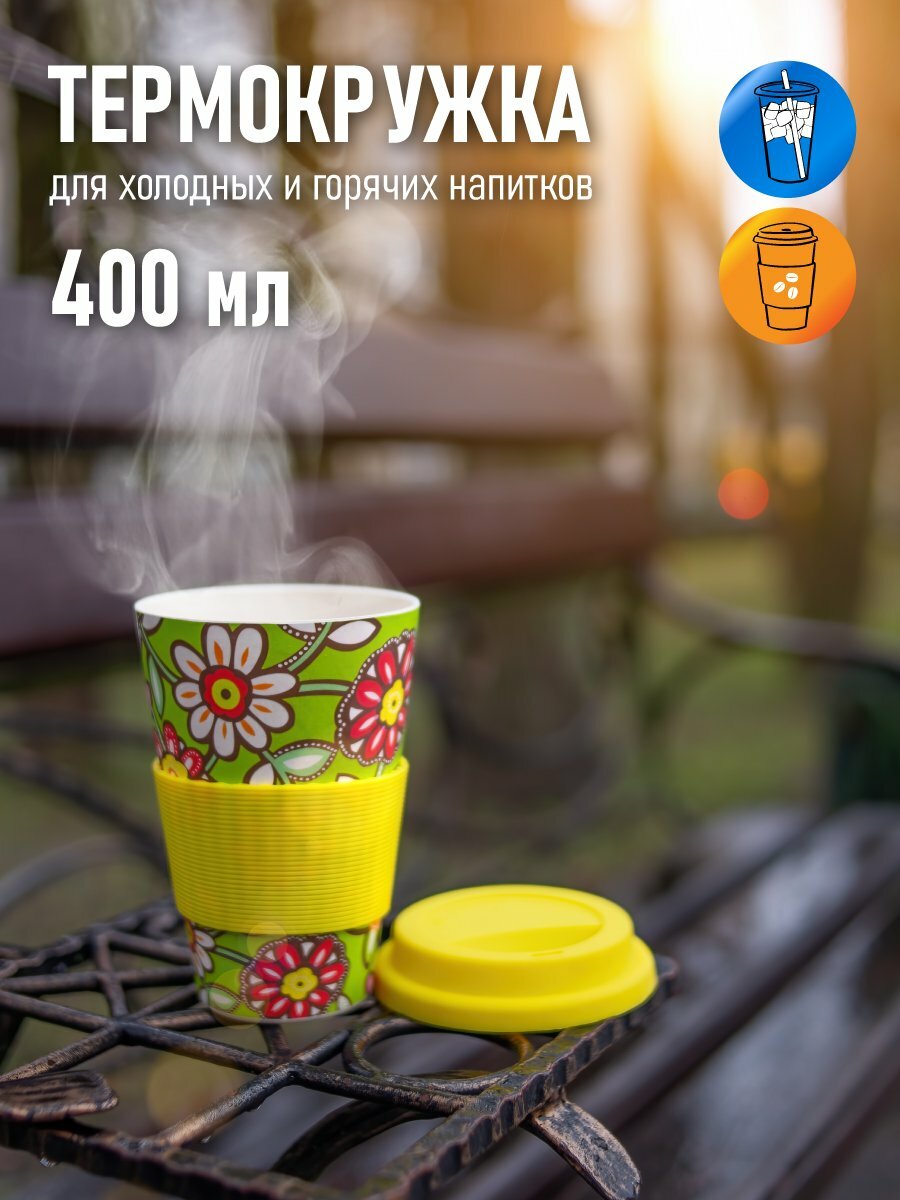 Купить Термокружка AREON BambooCup (Daisies Yellow/Желтые Ромашки) 400мл