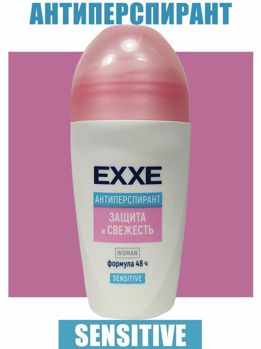 EXXE Дезодорант антиперспирант женский роликовый "Защита и свежесть" розовый, sensitive, 50 мл