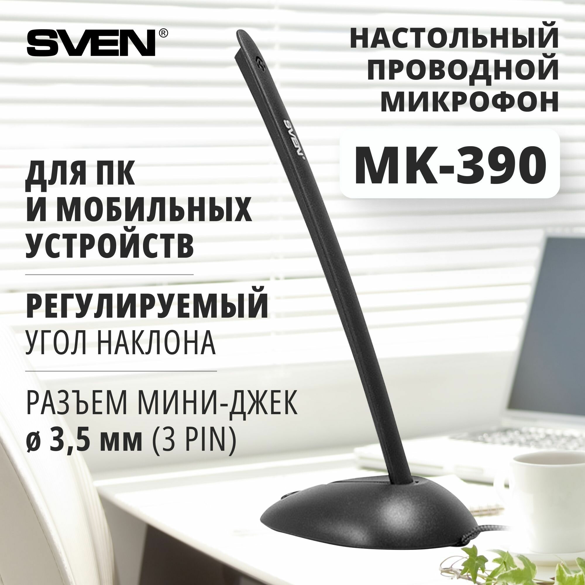Микрофон SVEN MK-390, черный (SV-007478)