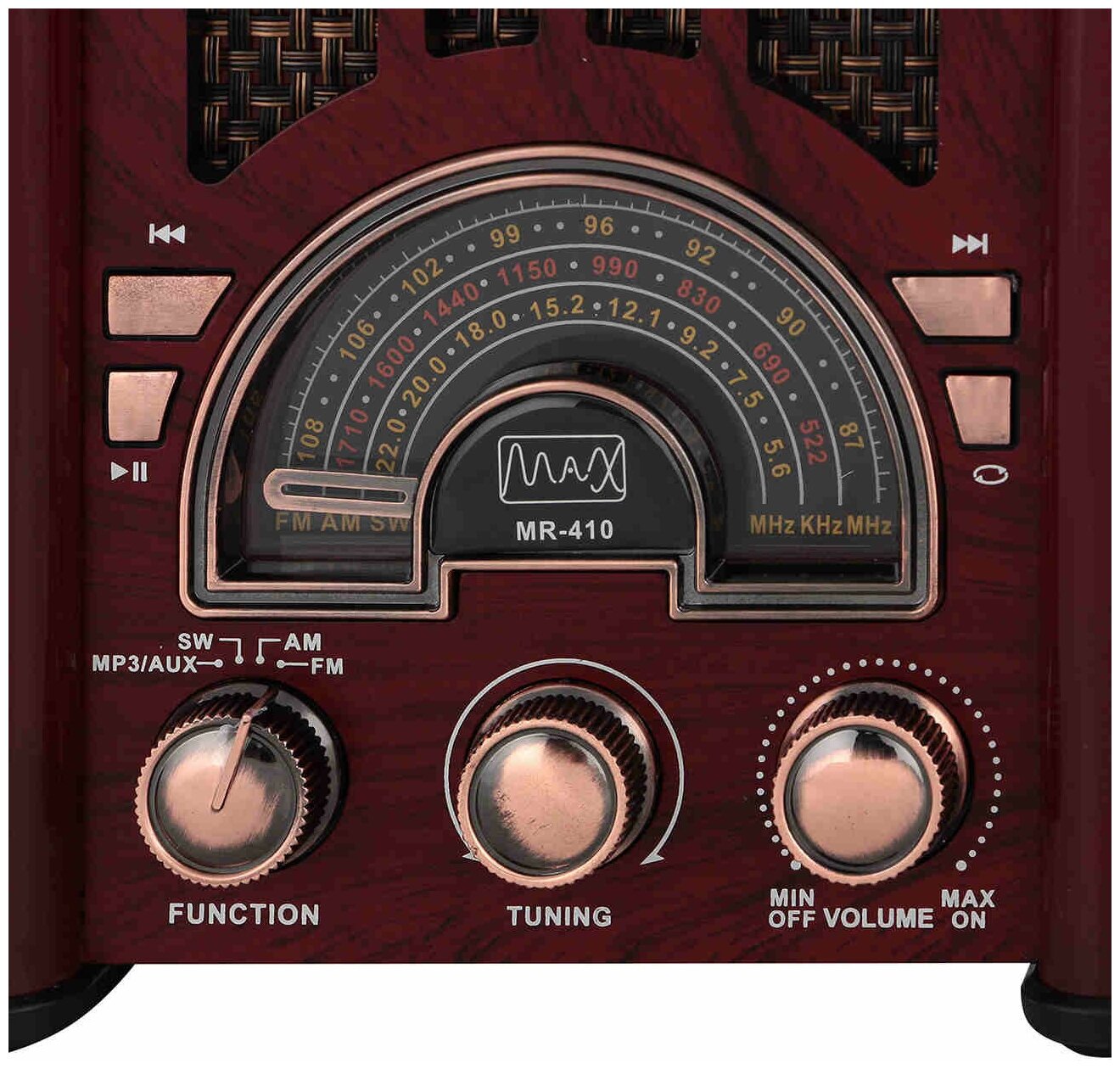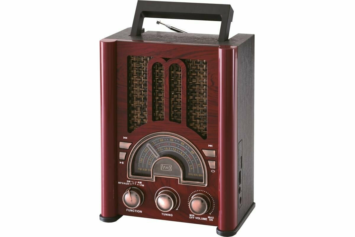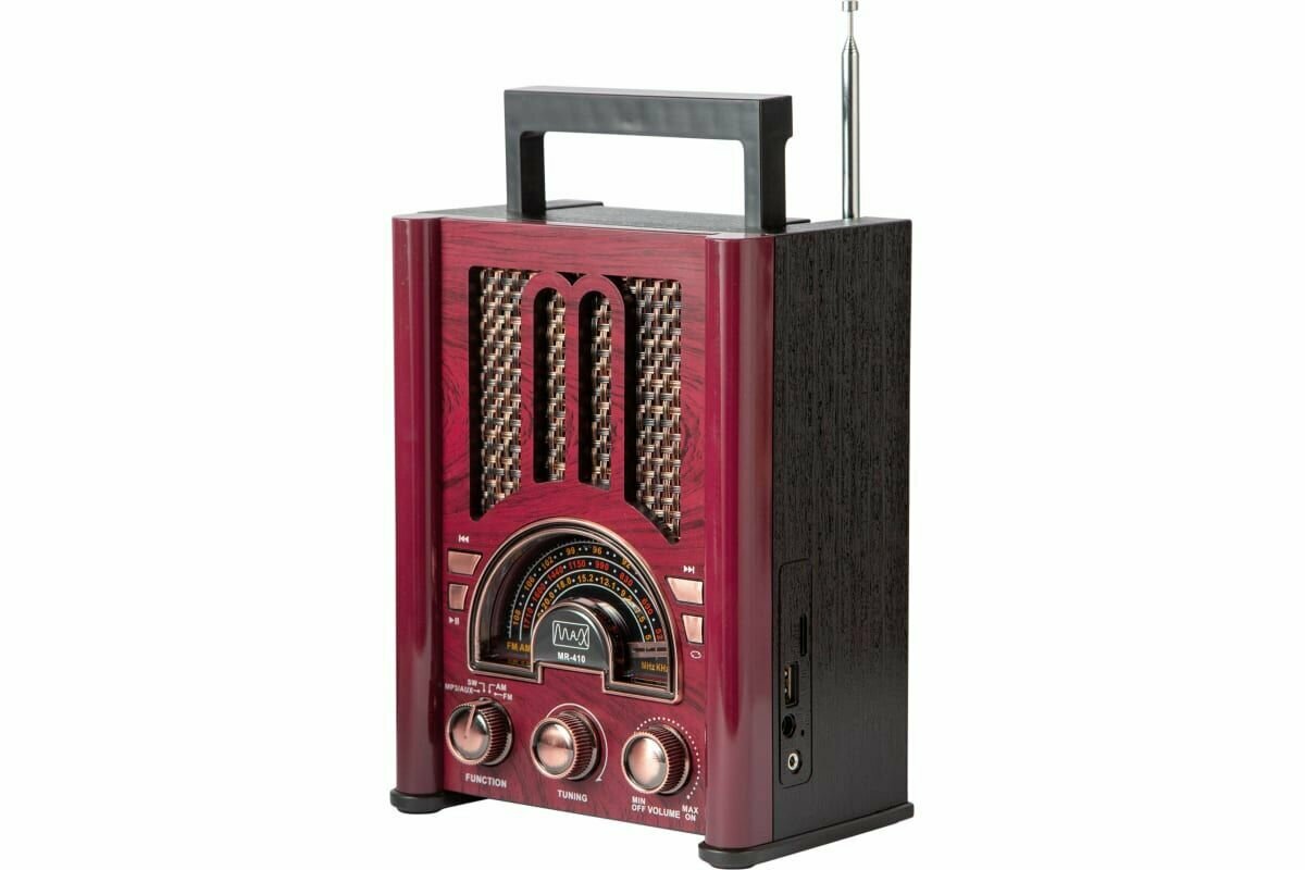 \Радиоприемник MAX MR 410, бордовый/Радио/Ретро/AM/FM/Bluetooth