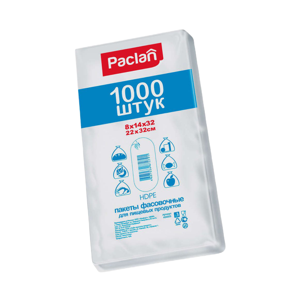 Paclan Пакеты фасовочные 22 х 32 см. 1000 шт/упак.
