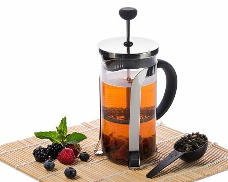 | Плюсы: | Самый любимый пресс. Колба стеклянная, сетка и пресс металлический. Приподнят над столом тремя металлическими ножками и поэтому медленно отдает тепло в поверхность стола. Объем на 1,5 больших кружки (2 пакетика Tess Pleasure). Вкус чая не портит, чай раскрывается полностью, при условии, что после закипания ставлю чайник остыть на 2-3 минуты (температура воды должна стать около 90 градусов). |