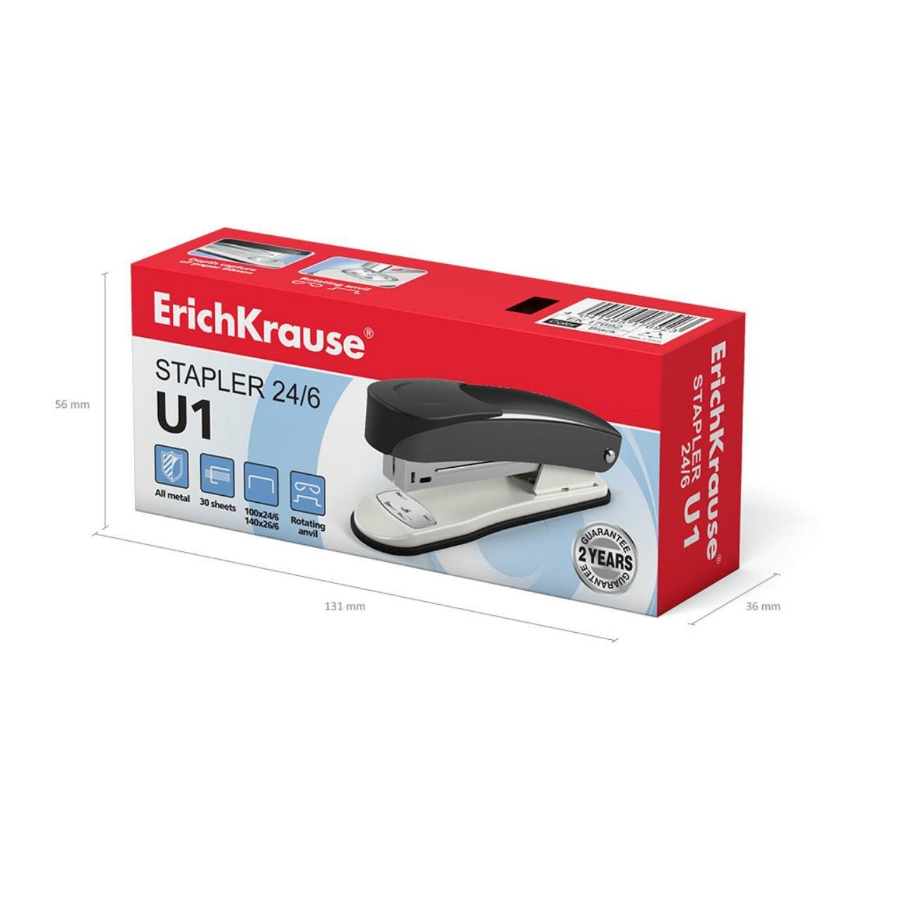 ErichKrause Степлер ErichKrause U1, № 24/6, до 30 листов, чёрный