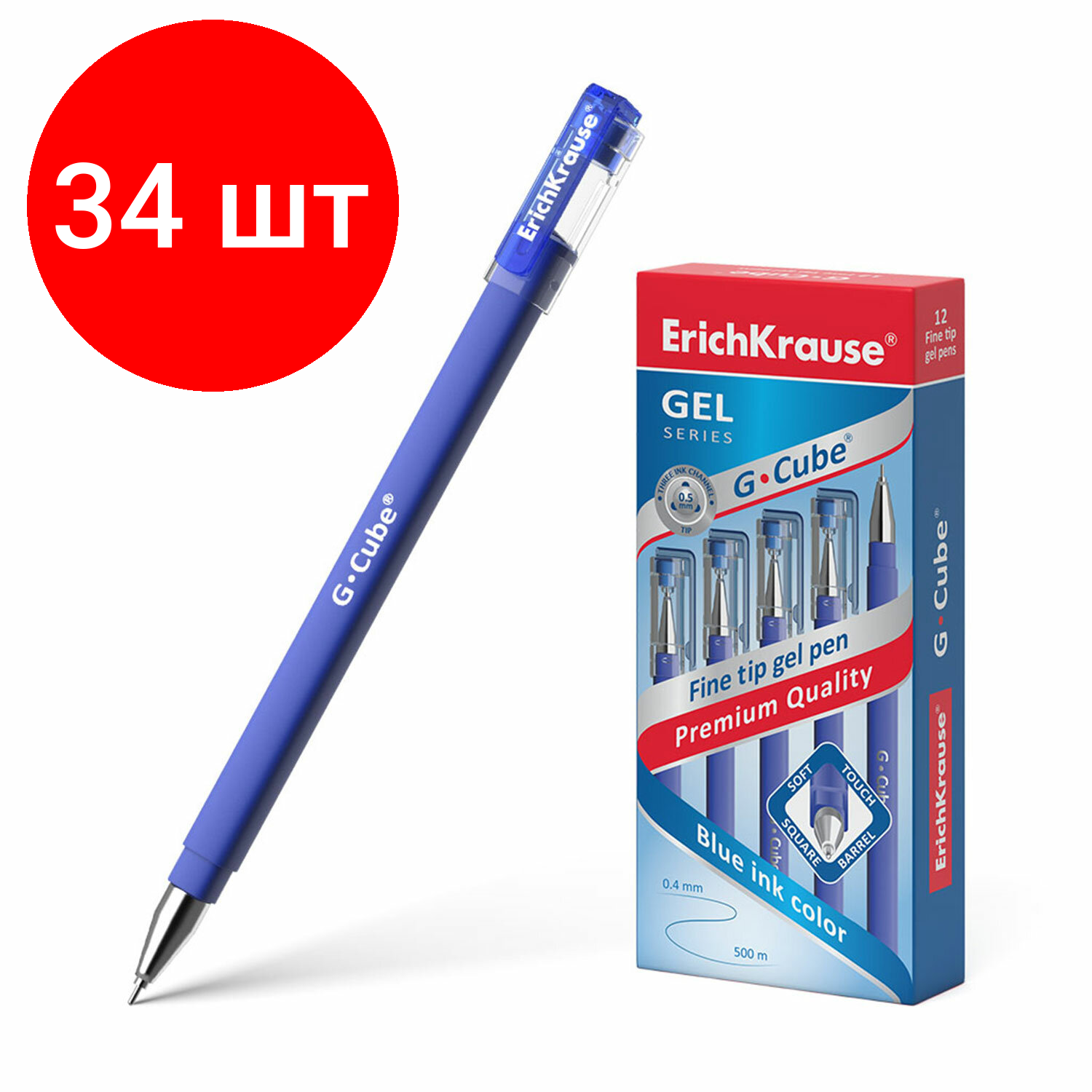 Купить Комплект 34 шт, Ручка гелевая ERICH KRAUSE "G-cube", синяя, корпус прозрачный, игольчатый узел 0.5 мм, линия письма 0.4 мм, 46162