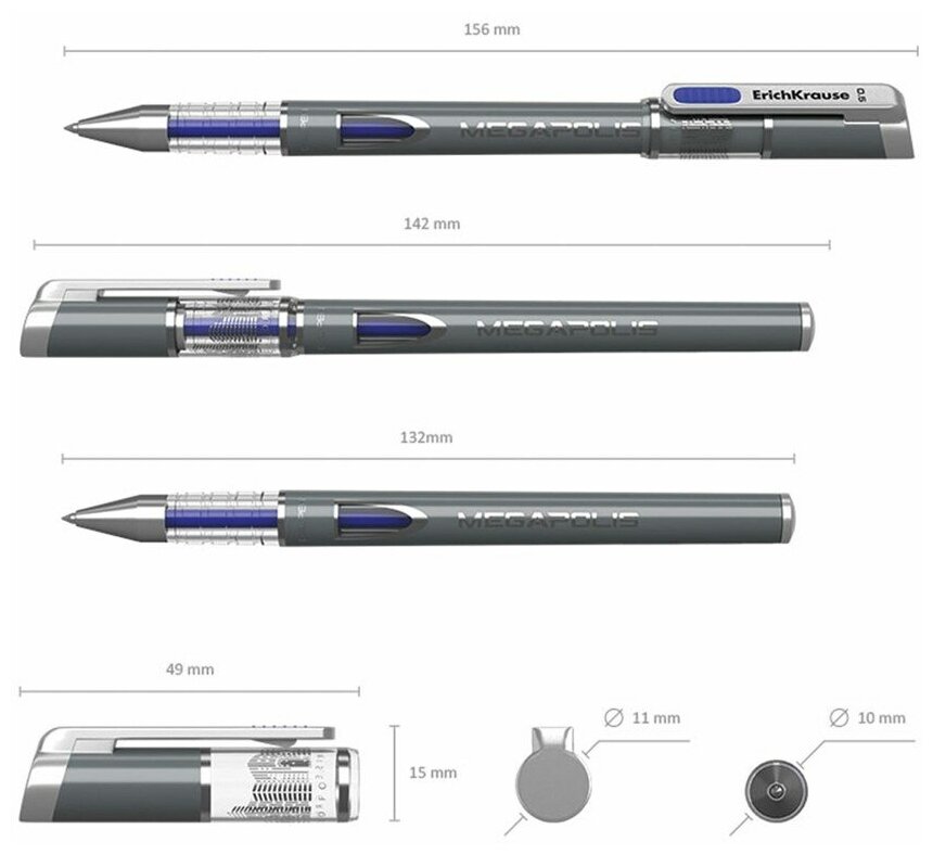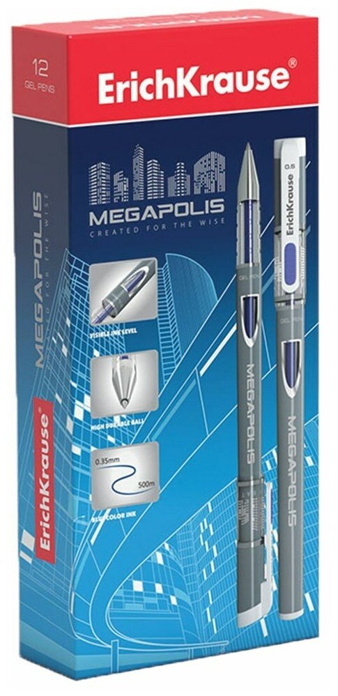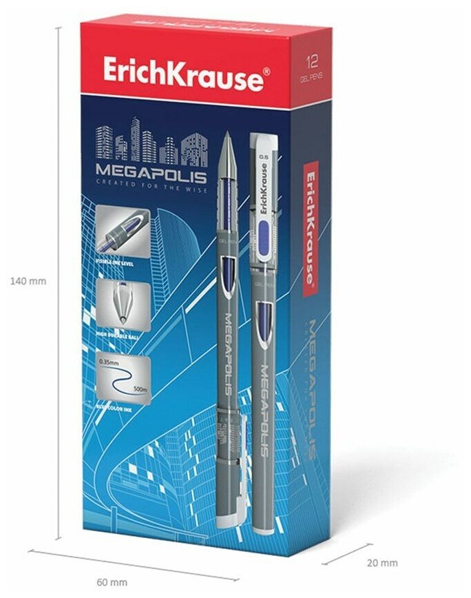 СохранитьРучка гелевая ERICH KRAUSE "Megapolis Gel" синяя корпус с печатью узел 0 5 мм линия письма 0 4 мм, 12 шт интересное: