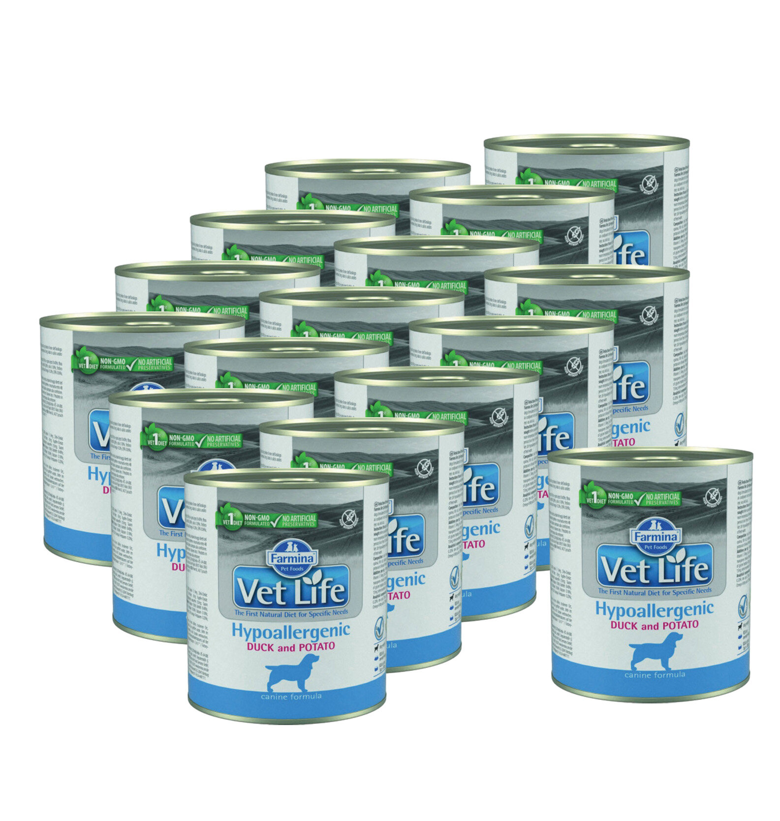 Купить VET LIFE паштет для собак гипо утка с картофелем 0,3 кг x 16 шт.