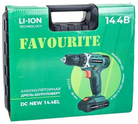 Аккумуляторная дрель-шуруповерт Favourite DC NEW 14,4EL, 14В, 2Ач, 26Нм