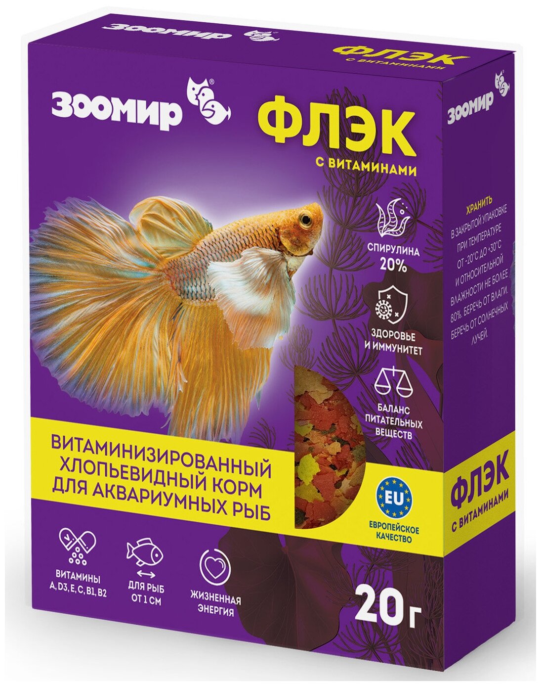 Зоомир "Флэк с витаминами " витаминизированный хлопьевидный корм, 20г