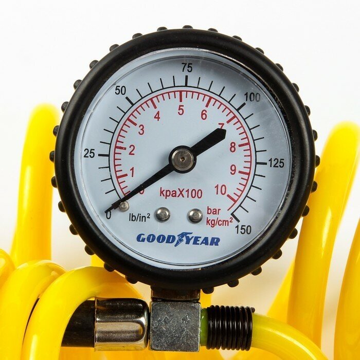 GOODYEAR GY000113 Компрессор автомобильный питание - от АКБ, манометр, с фонарем, съемный витой шланг, 12 V, 10 атм, 5
