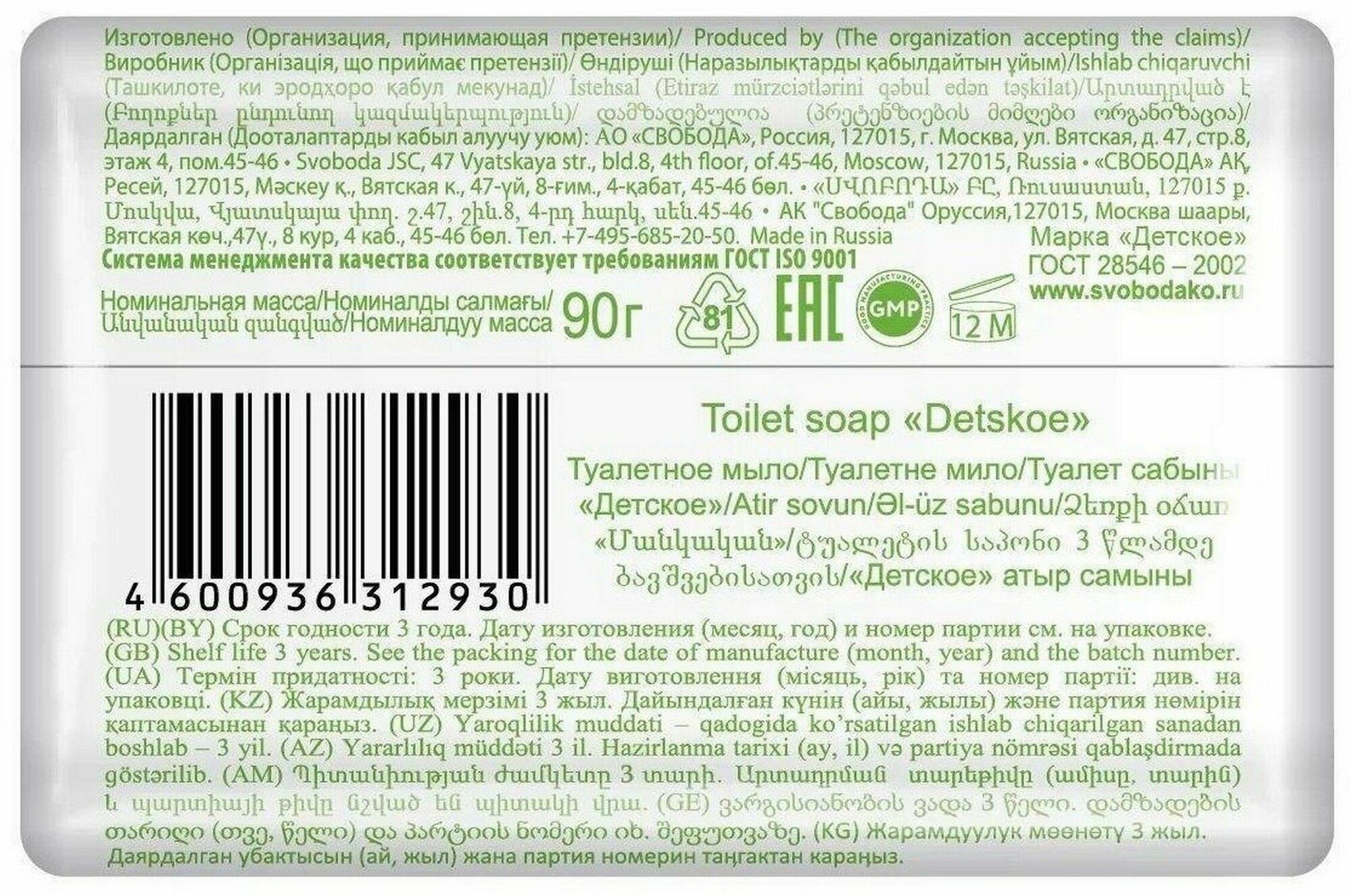 Свобода туалетное мыло детское в обертке, 90г, 6 шт