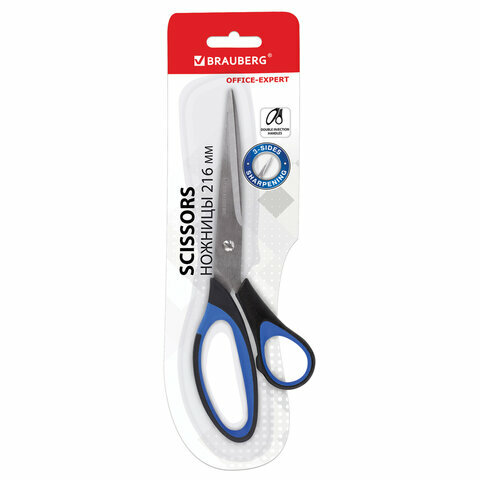 Ножницы BRAUBERG "Office-Expert" 216 мм, сине-черные, резиновые вставки, 3-х сторонняя заточка, 231563 В комплекте: 1шт.