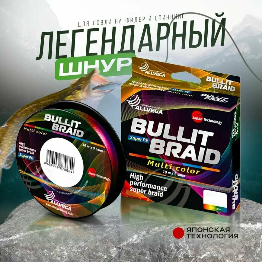 Купить Шнур плетёный ALLVEGA "Bullit Braid" 150м мультиколор 0,12мм (7,1кг)
