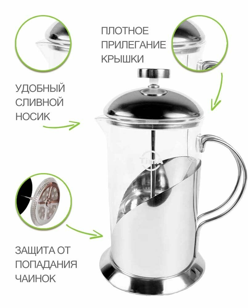 Купить Френч-пресс 0,35л TIMA Тирамису из нержавеющей стали и боросиликатного стекла