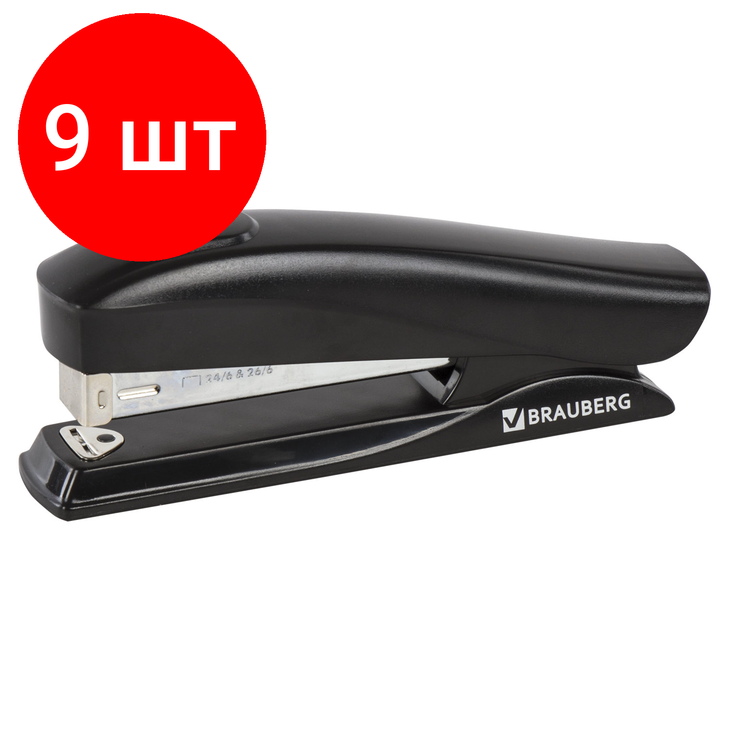 Купить Комплект 9 шт, Степлер №24/6, 26/6 BRAUBERG "ST-100", до 20 листов, черный, 224345