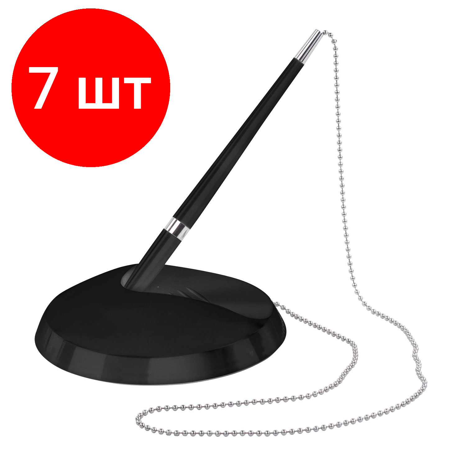 Купить Комплект 7 шт, Ручка шариковая настольная BRAUBERG "Стенд-Пен Блэк2", синяя, цепочка, корпус черный, линия письма 0.5 мм, 141347