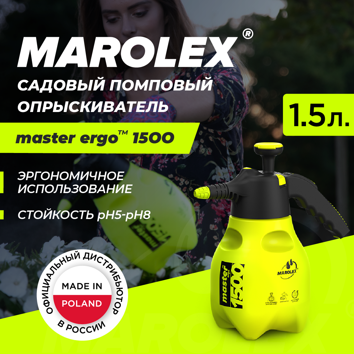 MAROLEX | Master ergo 1500 - Ручной садовый помповый опрыскиватель.