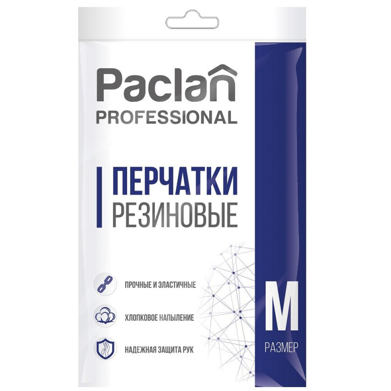 Перчатки резиновые PACLAN Professional, хлопковое напыление, желтые, размер М (латекс)