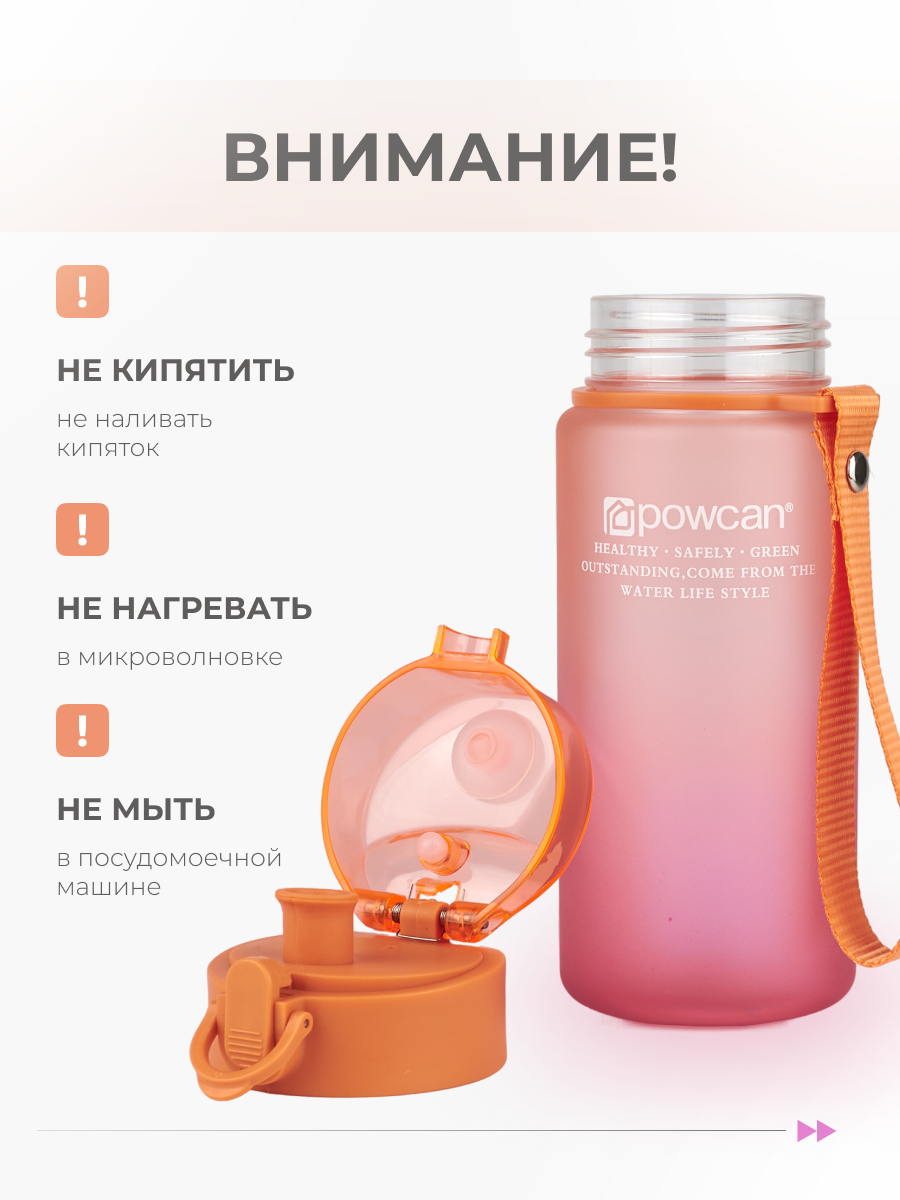 СохранитьБутылка для воды POWCAN - оранжево-розовый, 400 мл. матовая интересное: