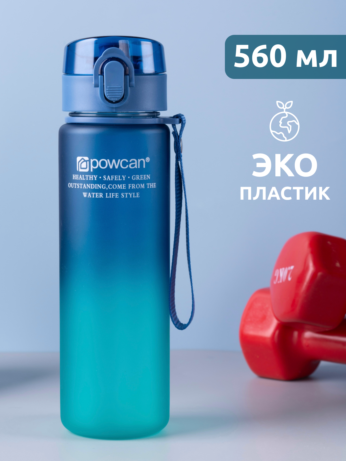 СохранитьБутылка для воды POWCAN - сине-голубой, 560 мл. матовая интересное: