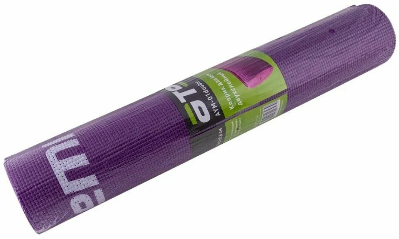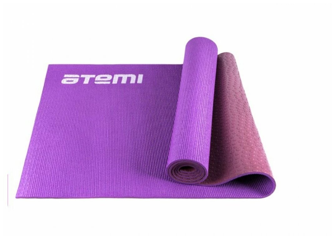 Коврик для йоги и фитнеса Atemi, AYM01DB, ПВХ, 173x61x0,6 см, двусторонний, фиолетовый