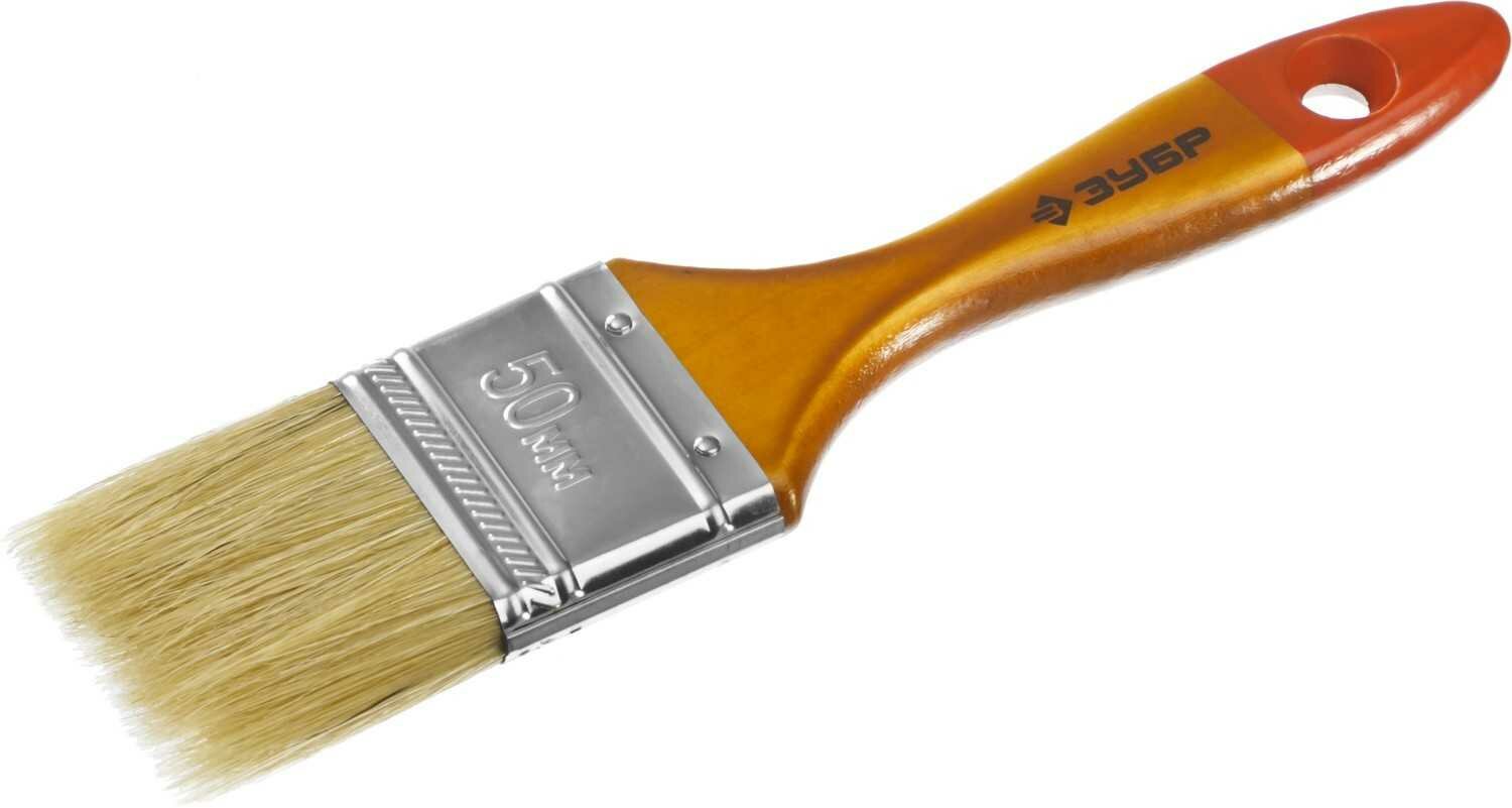Малярная плоская кисть ЗУБР Универсал 50 мм 2 натуральная светлая щетина деревянная ручка 4-01003-050