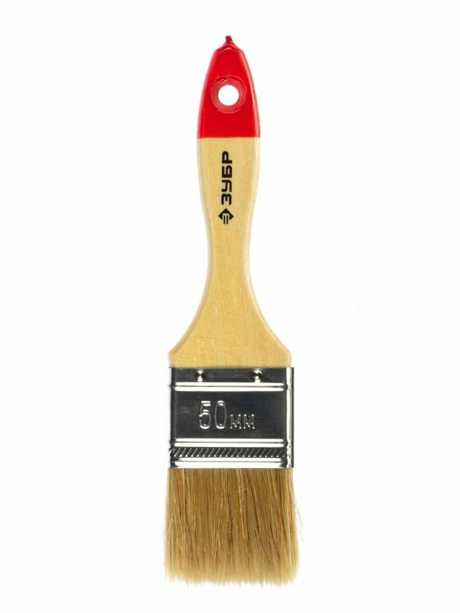 ЗУБР универсал, 50 мм, 2″, светлая натуральная щетина, деревянная ручка, все виды ЛКМ, плоская кисть (4-01003-050)