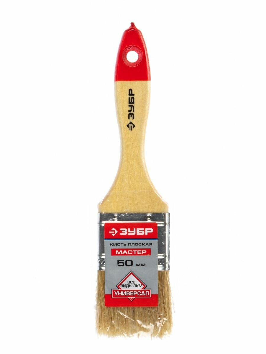 ЗУБР Универсал 50 мм, 2'' светлая натуральная щетина, деревянная ручка, Плоская кисть, мастер (4-01003-050)