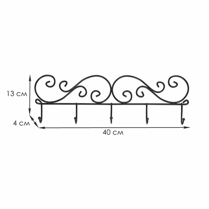 Вешалка настенная ЗМИ Кружева 5 с пятью крючками, металлическая, черного цвета, 40х4.5х13см / товары для дома
