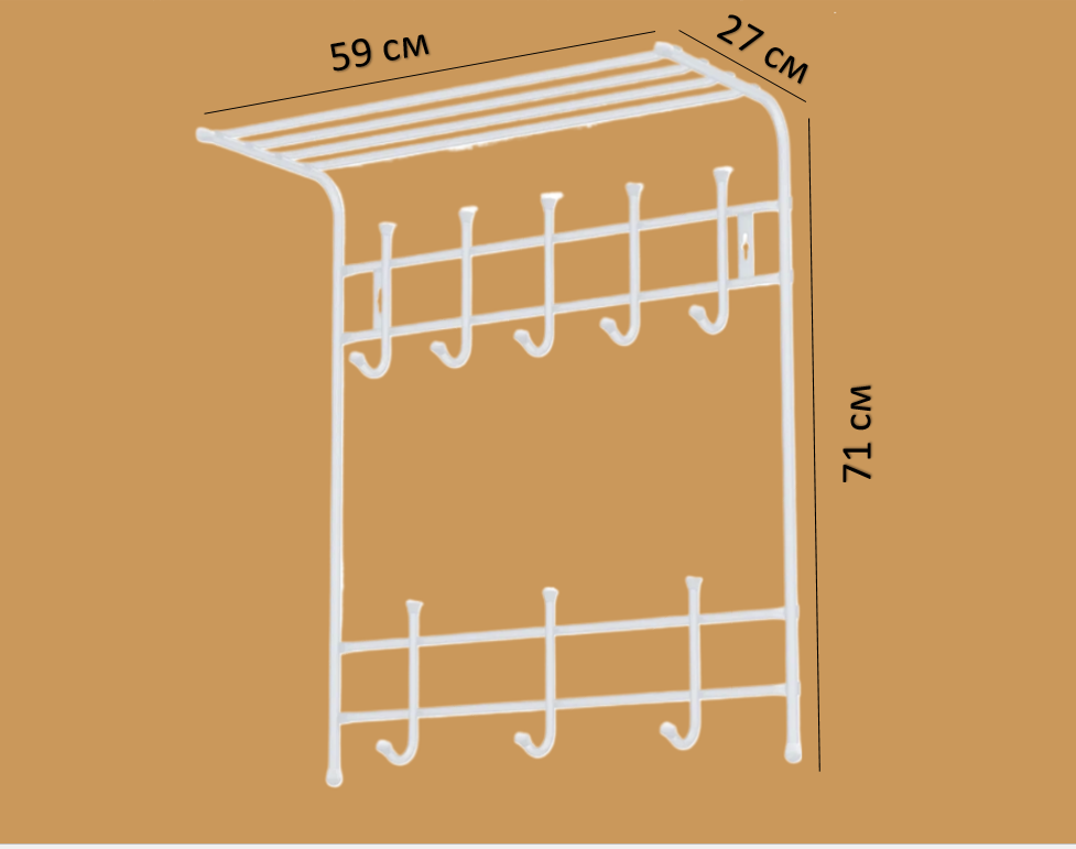Вешалка с полкой 2-х ярусная 590*270*710 мм 8 крючков матовый белый