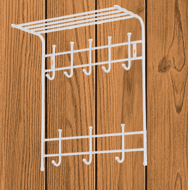 Вешалка с полкой настенная металлическая на 8 крючков ВПТ8 белый