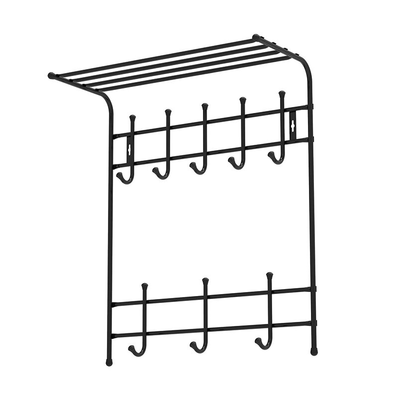 Вешалка настенная с полкой на 8 крючков, 60×25×74,5 см, цвет чёрный