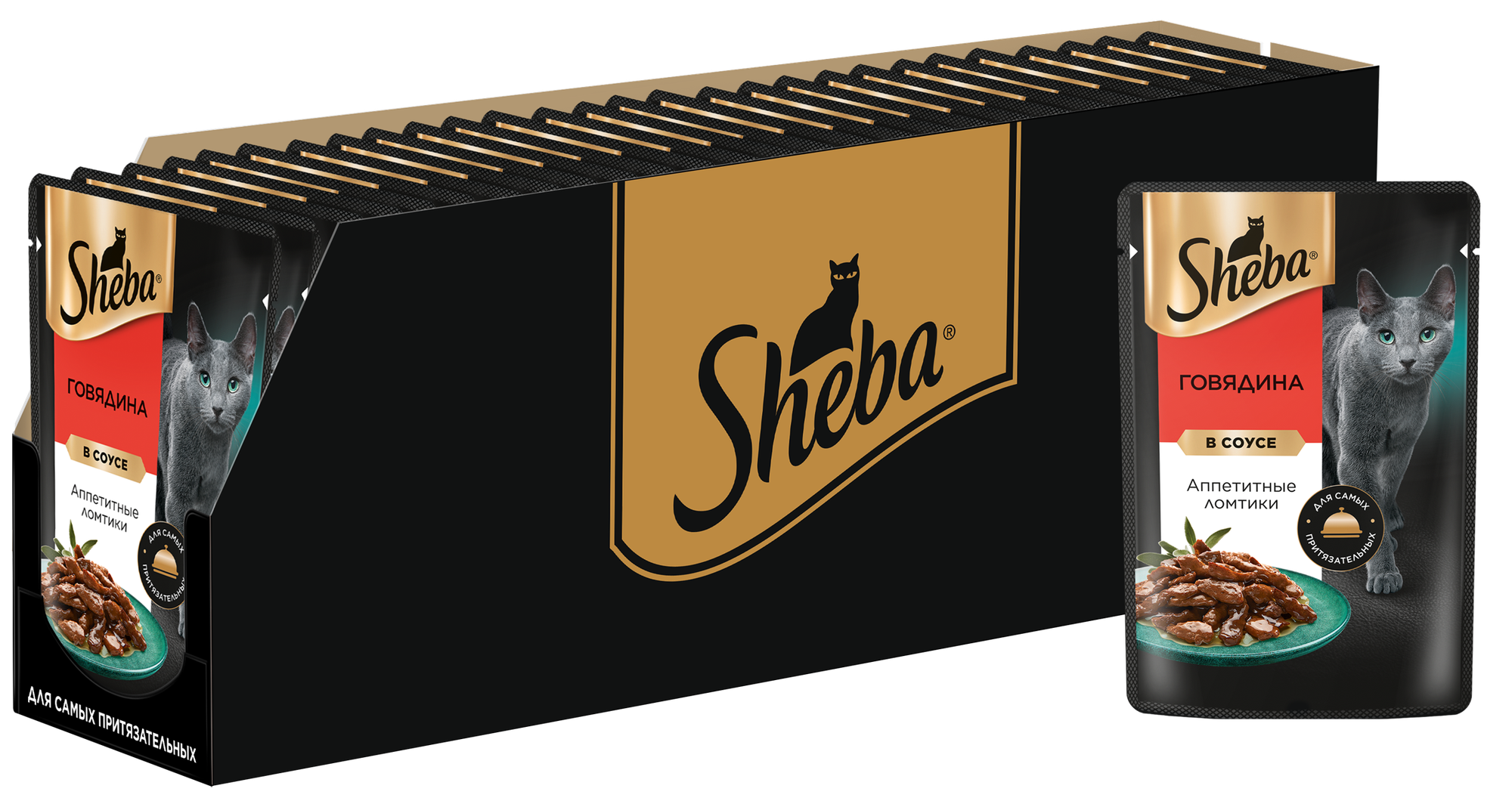 Sheba влажный корм для взрослых кошек всех пород, ломтики в соусе, говядина (24шт в уп) 85 гр