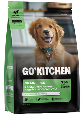GO'KITCHEN беззерновой для щенков всех пород 4 вида мяса: индейка, курица, лосось, утка