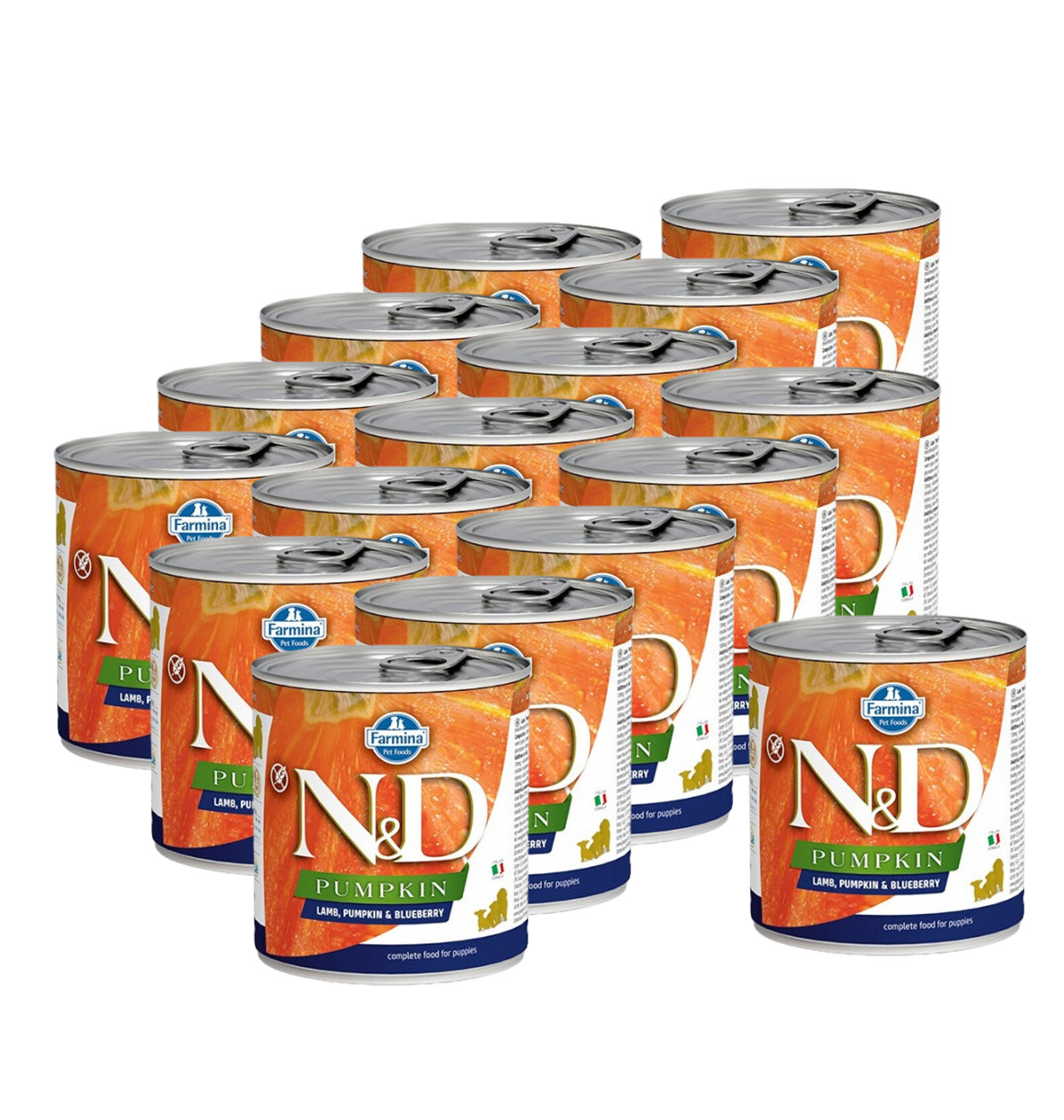 Корм Farmina N&D PUMPKIN, Lamb & Blueberry Puppy (консерв.) для щенков, ягнёнок с тыквой и черникой, 285 г x 6 шт