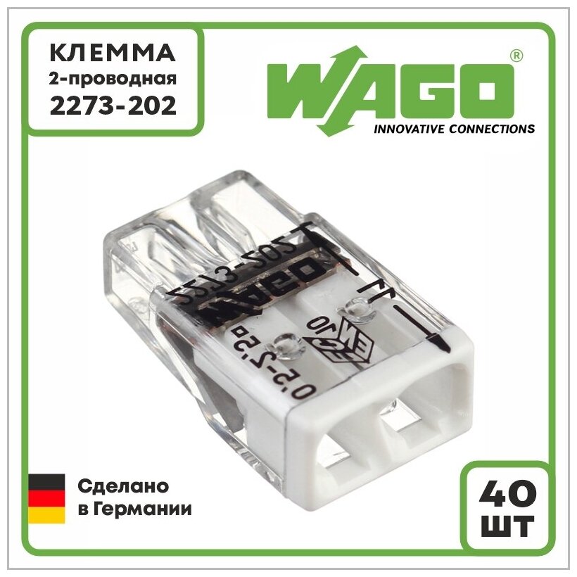 Клемма WAGO 2-х проводная 2273-202 40 шт