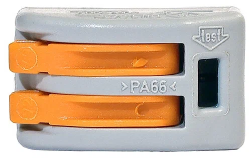 В клемме есть отверстие для тестера, чтобы не разбирать соединение. Для тех кто очень далек от электрики: в одну дырку втыкается один провод, в другую дырку - второй провод, который хочется соединить с первым. |
