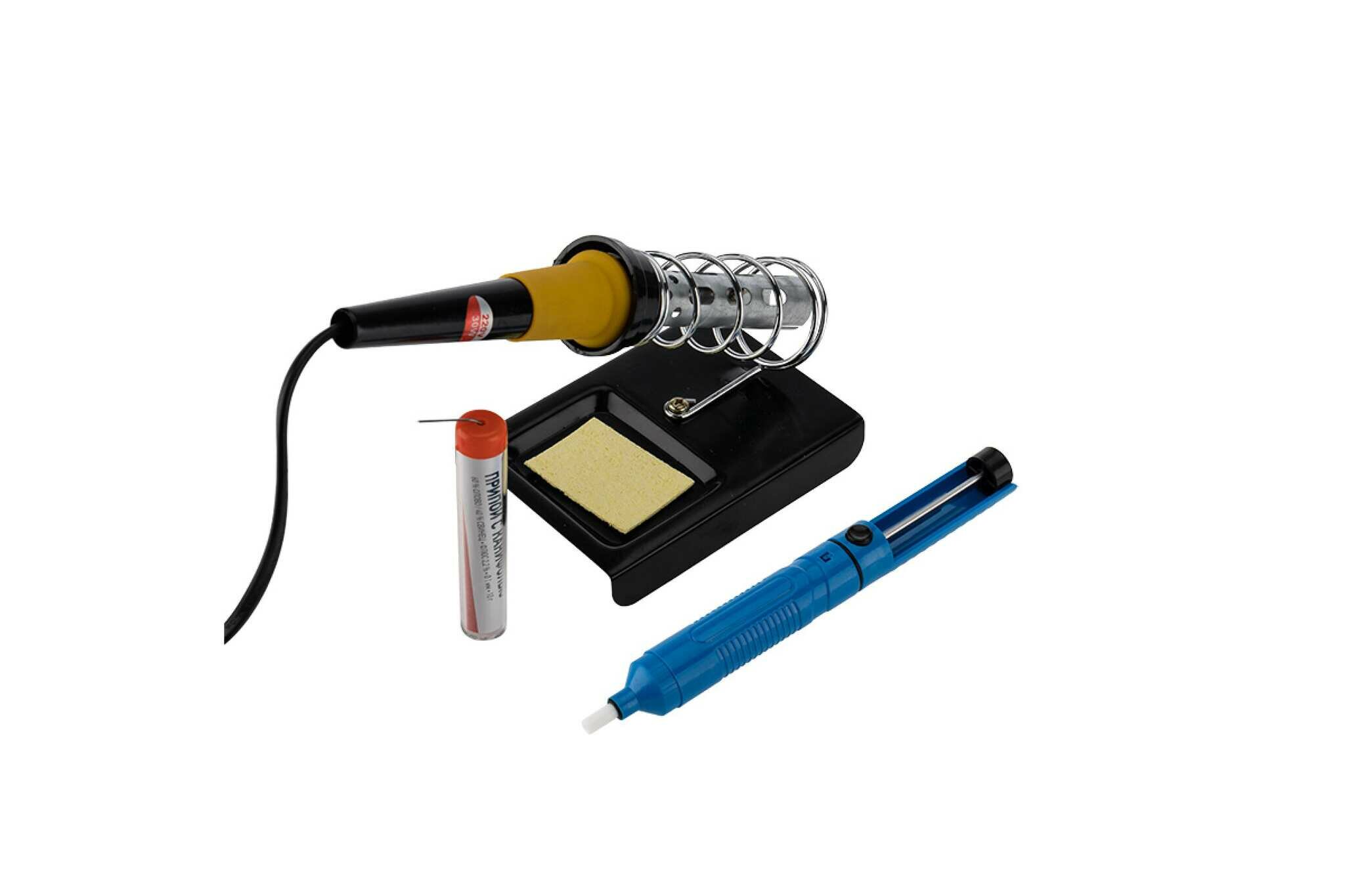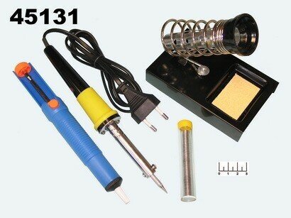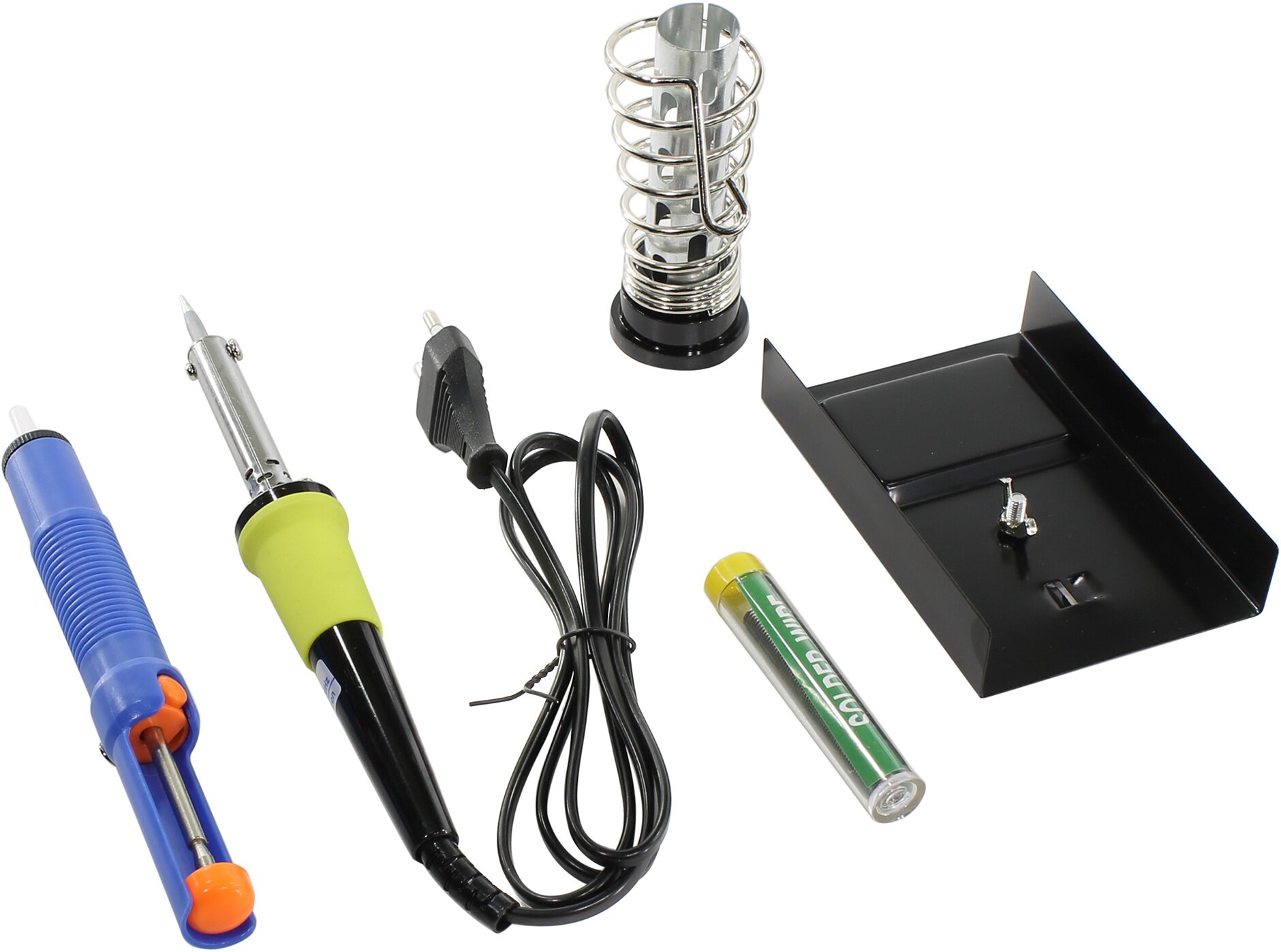 Набор для пайки №4 (паяльник 30 Вт, оловоотсос, подставка, припой, губка) 12-0163