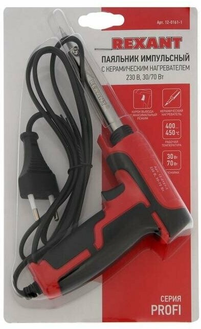 Паяльник Rexant 12-0161-1 импульсный с керам. нагревателем (Профи) 220V/30-70 Вт REXANT