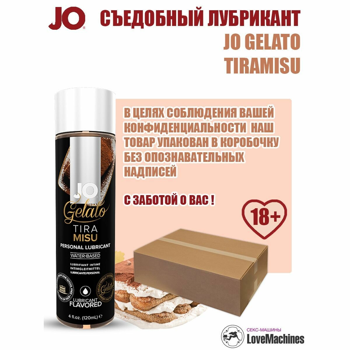 15630 JO Gelato Tiramisu, 120 мл. Лубрикант на водной основе со вкусом десерта