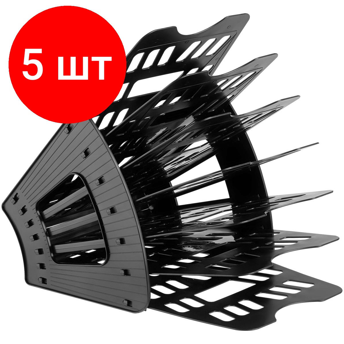 Купить Комплект 5 шт, Лоток для бумаг веерный СТАММ, 7-ми секционный, черный