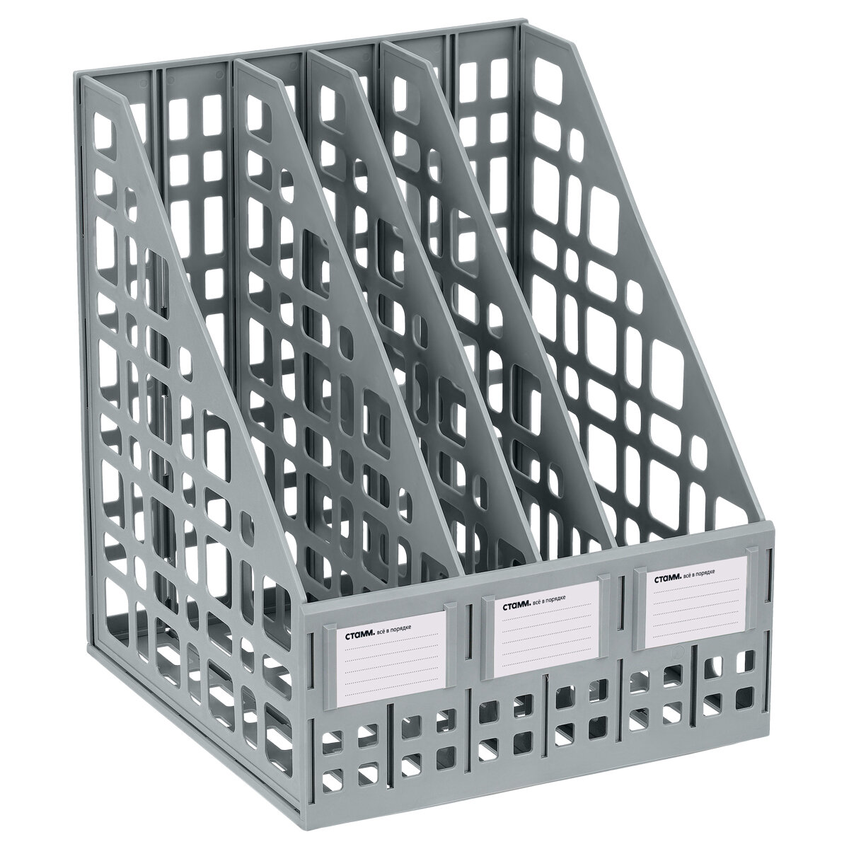 Лоток для бумаг вертикальный СТАММ, сборный, 4 отделения, серый - 2 шт.