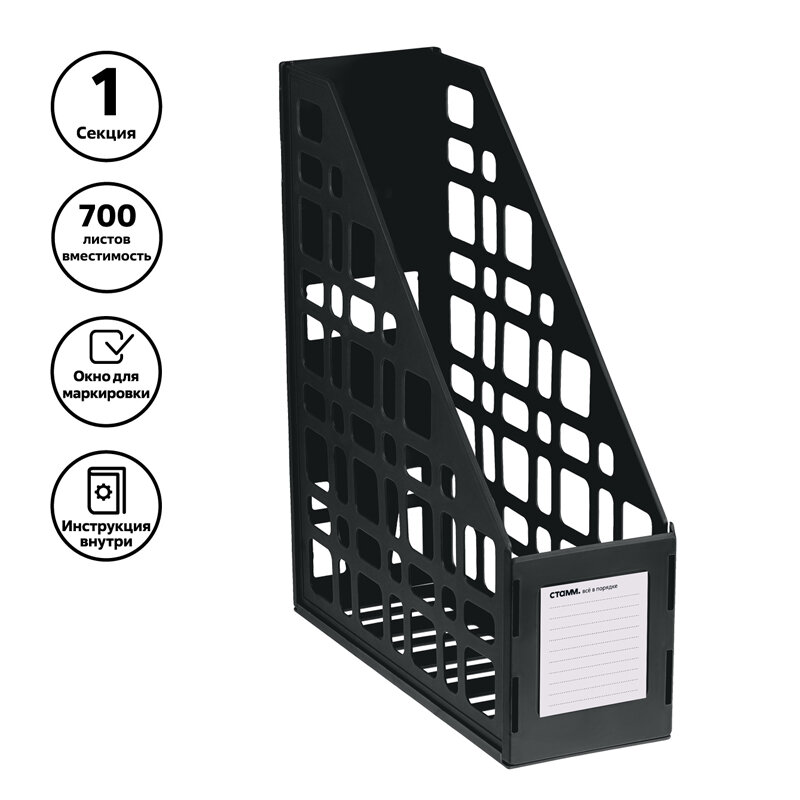 Лоток для бумаг вертикальный СТАММ, сборный, черный ( Артикул 323963 )