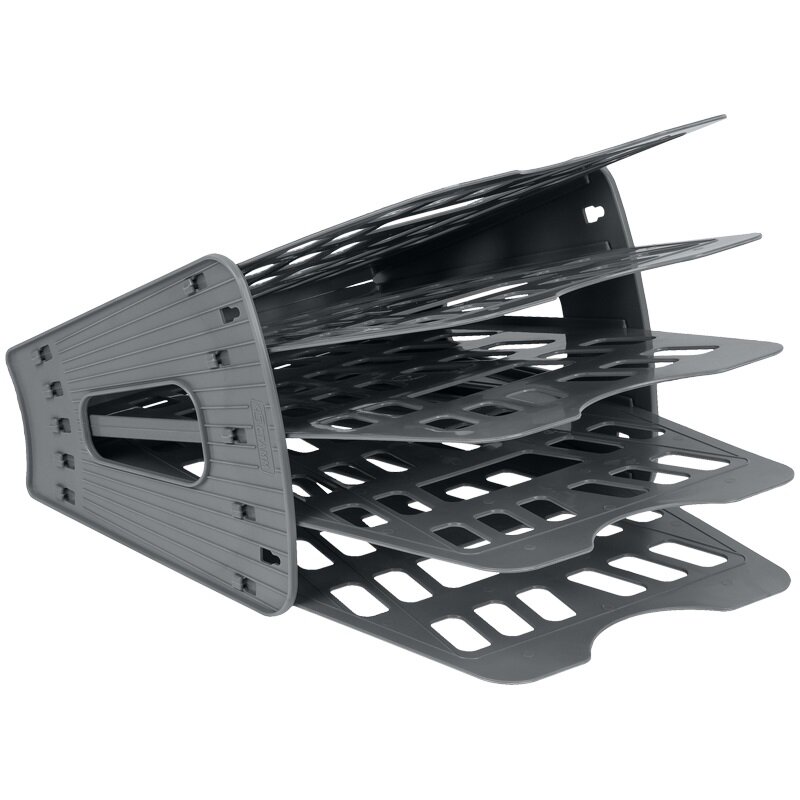 Лоток для бумаг 5-ти секционный, 4 отделения, серый, ЛТ90