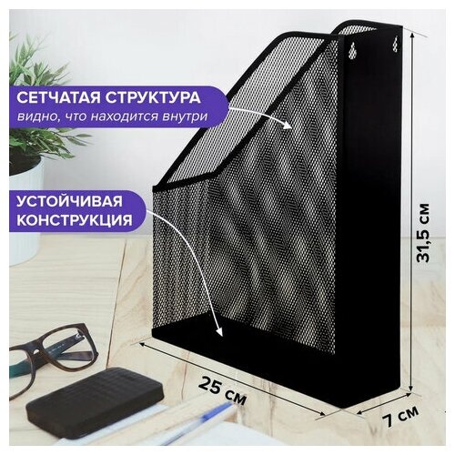 Лоток вертикальный для бумаг BRAUBERG «Germanium» (250×72×315 мм), металлический, черный, 231948