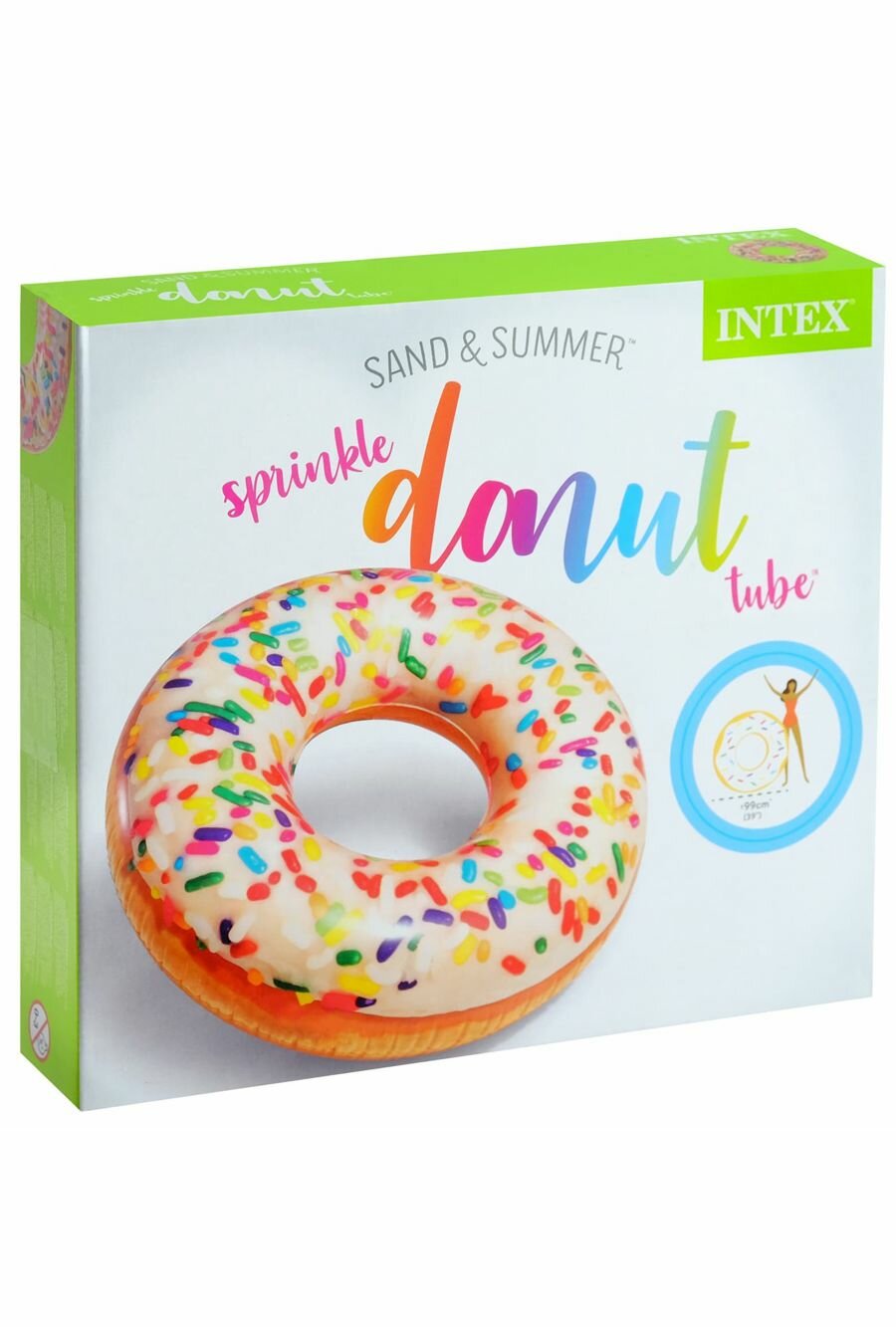Надувной круг для плавания 99х25см, Пончик радужный, Sprinkle donut tube, от 9 лет, нагрузка до 100 кг, без насоса, Intex 56263